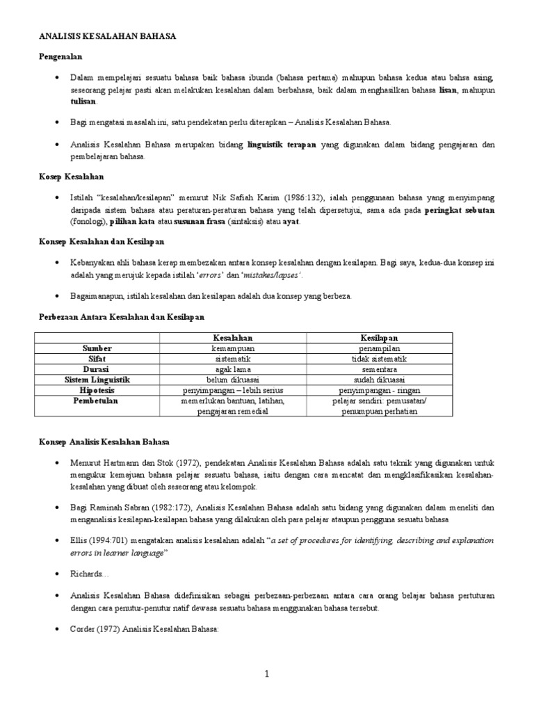 1Analisis kesalahan berbahasa tataran morfologi yang terdapat pada majalah gaul edisi 39 tahun 2012 pada halaman 38. Dalam buku Pelta Bahasa Melayu Penggal 111 ternyata kesalahan penggunaan sendi nama telah wujud lebih tiga puluh tahun lalu. Belum lagi masuk kesalahan-kesalahan lain dalam morfologi dan ejaan.
